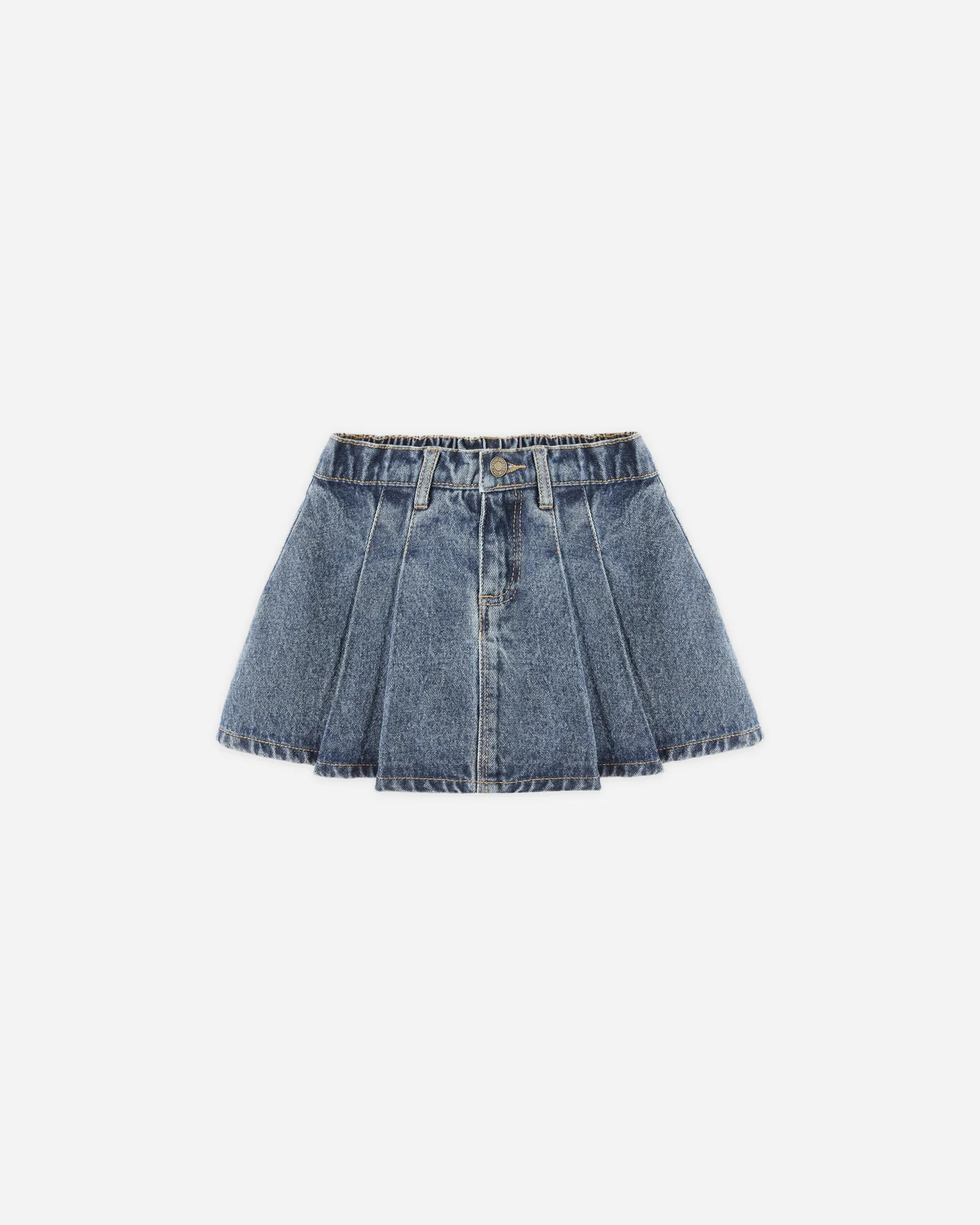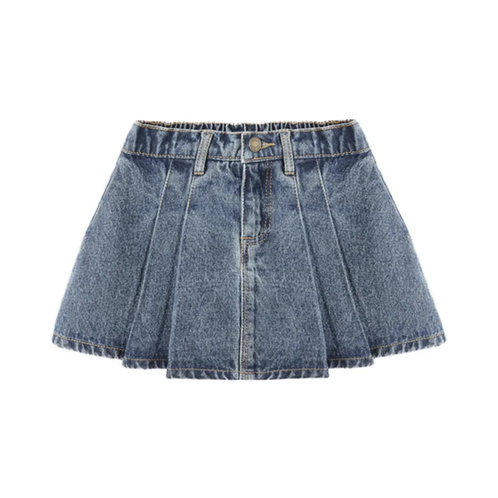 Girls Summer Casual Fashion High Waist Pleated Denim Skirt-Plus Size Straight Silhouette Ruffle Button Pocket Print Pattern